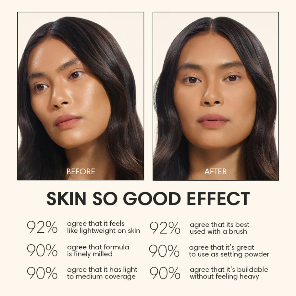 How to apply: Use on its own for light to medium coverage, or use to set cream products like Skin So Good: The Multistick. Touch up excess oil any time of the day without losing the natural finish.